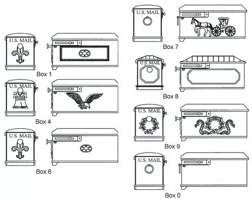Mailboxes 1-9 are 10-1/2 in. high x 8 in. wide x 19 in. deep - 12 lbs.